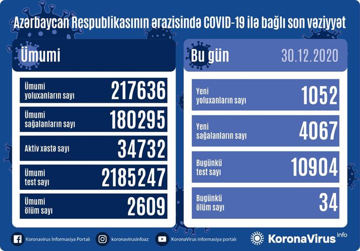 Qeyd edək ki, 29 dekabr 2020-ci il tarixində isə son gün ərzində 1101 yoluxma faktı qeydə alındığı açıqlanmışdı.