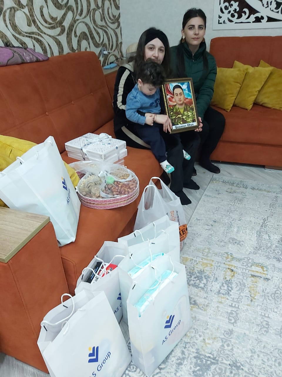 Ötən gün şirkət şəhid çavuş Tağıyev Hüseynin və müharibə başlandığı gündən döyüşlərə könüllü olaraq qatılan Qasımov Eltunun ailələrilə görüşərək onlara maddi dəstək və bayram sovqatlarıyla qonaq olub. “AS Group İnvestment” şəhid Tağıyev Hüseynin Ramana qəsəbəsindəki Şuşa şəhərciyində dövlət tərəfindən mənzillə təmin edilən ailəsinə çatışmayan məişət əşyaları, maddi yardım və həmçinin martın 28-də 1 yaşı tamam olacaq övladı Nazlıya öz hədiyyələrini çatdırıb. 1991-ci il doğumlu şəhidimiz Tağıyev Hüseyn həm Tovuz döyüşlərində, həm Qazax, həm də İkinci Qarabağ Müharibəsində xüsusi qəhrəmanlıqlarıyla seçilib. Kəşfiyyatçı kimi dövlətimiz və Vətənimiz qarşısında xüsusi xidmətləri olub. “Vətən uğrunda”, “Füzulinin azad edilməsi uğrunda” medallarıyla təltif edilib.
